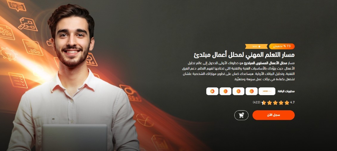 1. الحل المتكامل (الأكثر توفيرًا): مسار التعلم المهني لمدير تحليل الأعمال -احصل على 7 شهادات ودورات مهارية في باقة واحدة بخصم 73%.